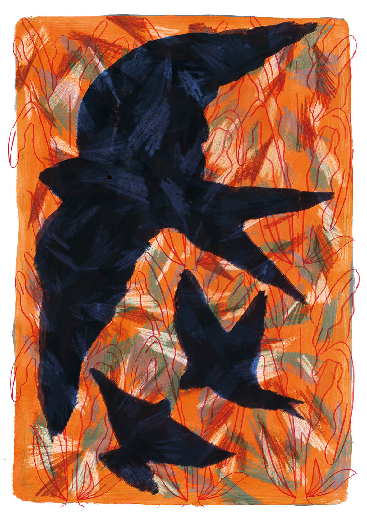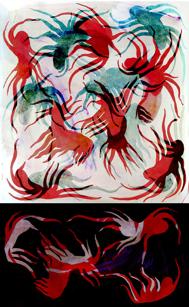 Peinture acrylique, feutres, crayons