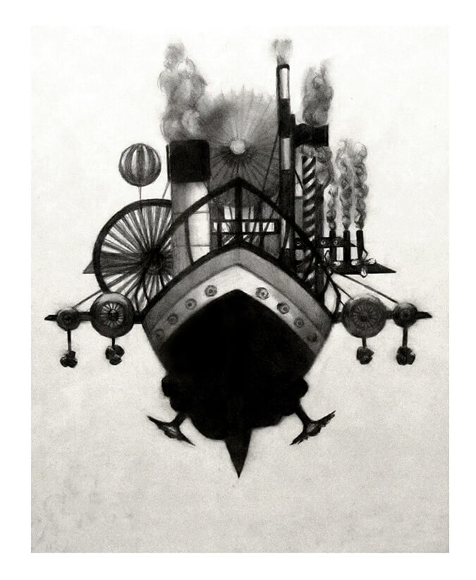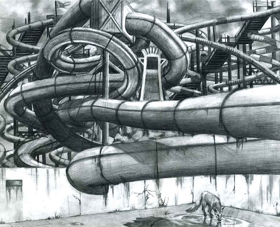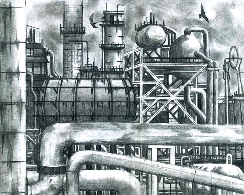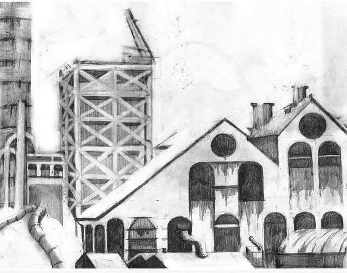 L’objectif est de rendre visible par le dessin sur grand format certaines infrastructures souvent ignorées ou mal connues, en utilisant des techniques comme des mines graphites ou du fusain pour évoquer directement les matières industrielles
